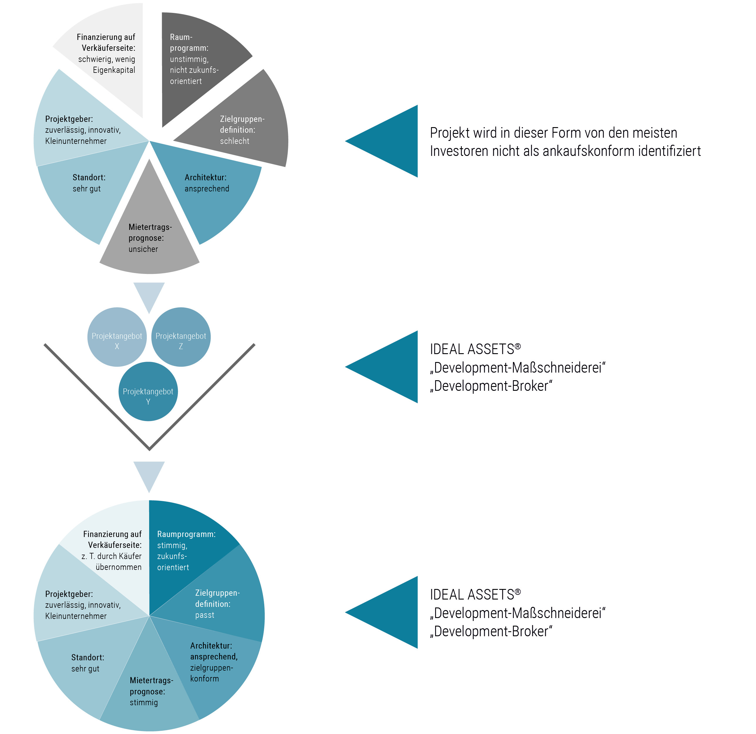 • Wir strukturieren Ihre Wohn-Immobilien-Assets nach regionalen und sektoralen Kriterien – unter Berücksichtigung der entsprechenden Marktzyklen. Dabei erarbeiten wir auch die zukunftsrelevanten Produktkriterien.